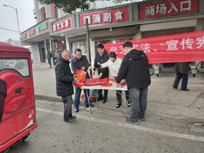 各街乡(园区)在辖区集镇、市场、学校等人流量较大的地段设立中心宣传点,悬挂相应的横幅标语,发放宪法等法治宣传资料,集中开展宪法宣传和法律咨询服务活动。