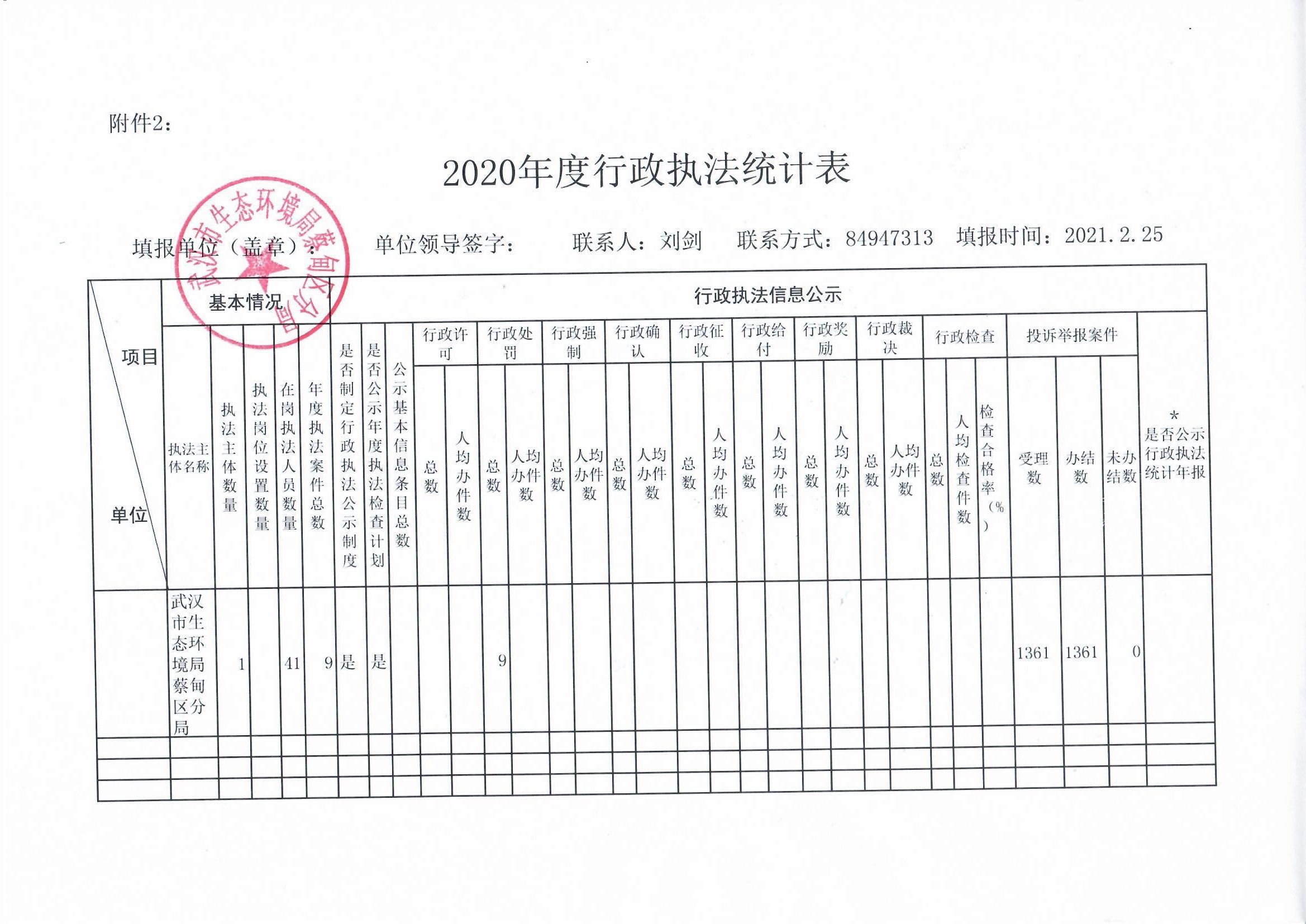 2020年武汉市生态环境局欧美性爱 分局行政执法统计年报