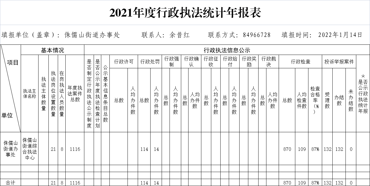 2021年欧美性爱 侏儒山街道办事处行政执法统计年报