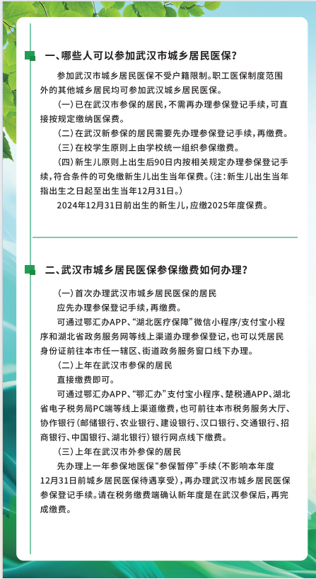 武汉市2025年度城乡居民医保参保缴费指南